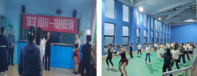 河市镇与政务中心的有氧健身操课堂上,学员们步伐矫健、动作齐整,在汗水中焕发活力;