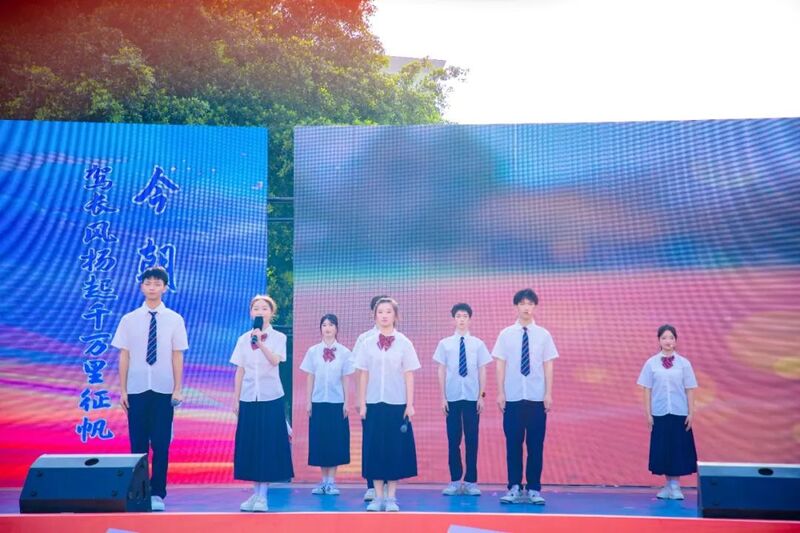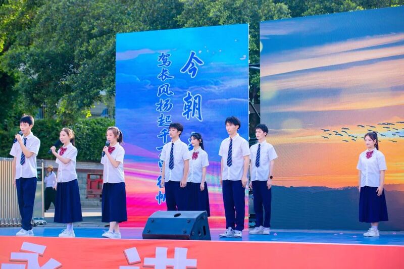 学生代表郑双双同学以《振翼今朝酬壮志,执笔六月写华章》为题进行发言。她深情回顾了十八年成长历程中父母和老师的辛勤付出,表达了对他们的感恩之情。面对即将到来的高考,她鼓励同学们相信坚持的力量,坚信那些为梦想拼搏的日夜终会化作成功的曙光,并号召同学们在未来的人生道路上,像翠屏山巅的青松和洲河奔涌的浪花一样,勇敢坚毅,绽放光芒。