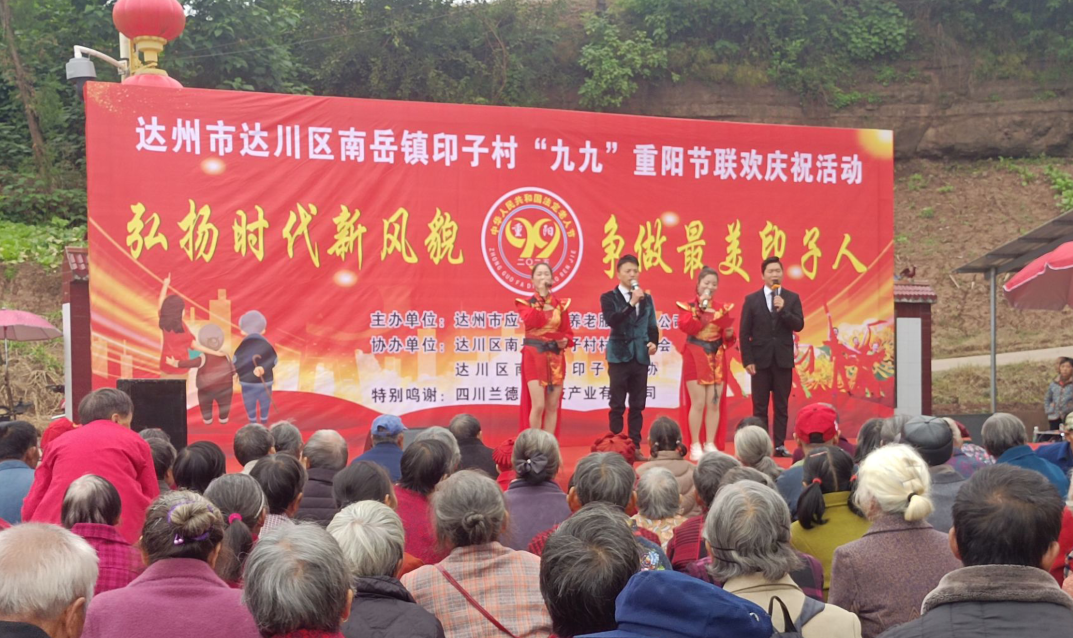 岁岁重阳添暖意,寸心敬老寄深情。为弘扬尊老敬老传统美德,营造孝亲爱老社会风尚,正值九九重阳,10月29日,达川区南岳镇印子村“两委”联合达州市应子应天养老服务有限公司、南岳镇印子村老年人协会、四川兰德高科技产业有限公司,共同举办“弘扬时代新风貌 争做最美印子人”主题敬老活动,以文艺演出、暖心慰问、敬老宴等形式,为村内老年人送上节日的祝福,传递浓浓温情。