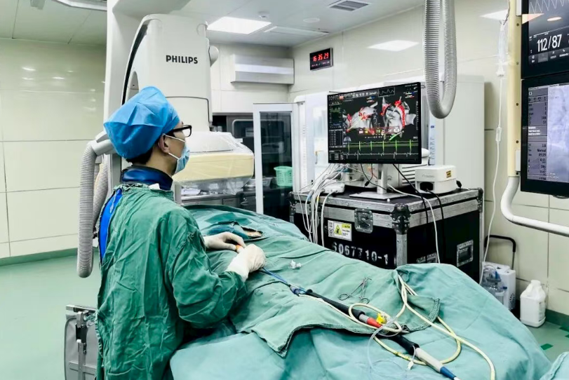 “病变复杂,但患者生命至上,我们必须全力以赴。”主任在术前讨论中定下基调。心血管内科、胸心血管外科、医学影像科、麻醉科等多学科团队充分评估后,与患者家属深入沟通,最终决定实施高精度冠状动脉介入治疗(PCI)。在血管内超声(IVUS)的精准引导下,团队先用冠状动脉旋磨技术将钙化斑块打磨成微米级微粒,再采用“主动拘禁保护技术”,在保护分支血管的前提下精准植入支架并塑形。三小时奋战后,造影显示血管恢复畅通,患者一周后康复出院,这只是团队2025年数百例冠脉介入手术的一个缩影。