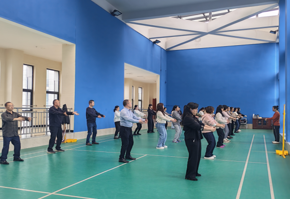 本次课程特别邀请了通川区健身气功协会常务副会长、国家一级裁判员龚秀英老师授课。课堂上,龚老师结合理论讲解与现场示范,耐心拆解八段锦动作要领,手把手指导职工协调呼吸与动作,帮助大家轻松掌握科学养生技巧,专业贴心的教学获得了学员们的一致认可。