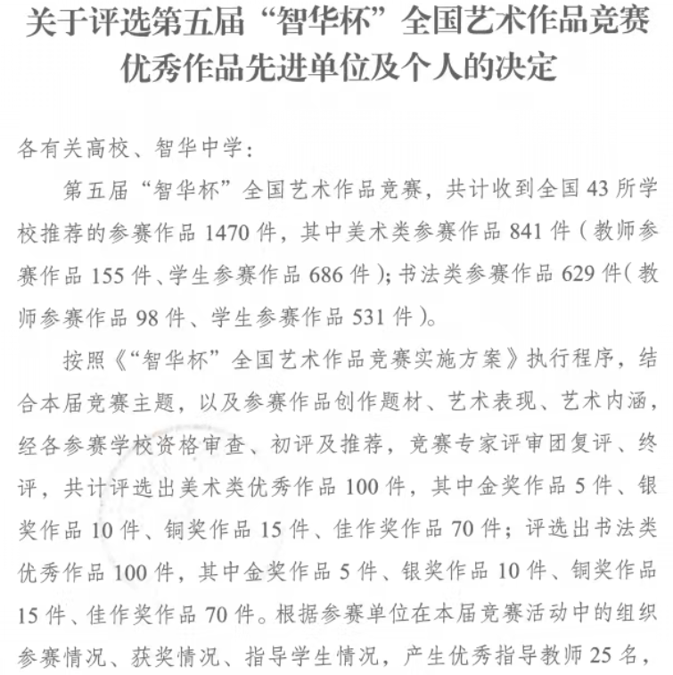 硕果盈枝缀满园,捷报频传奏凯歌! 在这个洋溢着收获与喜悦的季节里,我们怀着无比激动的心情,向全体师生、家长以及长期关心支持达川中学发展的社会各界人士报喜! 近日,从国家、市、区各级各类作品征集活动接连传来佳音,达川中学师生凭借出色的才华、独特的创意与不懈的努力,一路“披金斩银”,成绩斐然,捷报频传! 无论是文学创作的锦绣篇章,还是艺术创作的匠心硕果,都得到了评委专家们的高度认可,充分展现了达川中学师生卓越的综合素养与昂扬的精神风貌。 【一】 西南林业大学承办的第五届“智华杯”全国艺术作品竞赛最近公布了获奖作品,川中学子书法作品在众多参赛作品中脱颖而出,其中:作品《风度山横联》斩获银奖,《题邓爱慕》、杜牧《江南春》两件作品喜获佳作奖,赵庭老师荣获“优秀指导教师”。 祝贺以上获奖师生!让我们一同为学子们的才华喝彩,也祝愿同学们在艺术熏陶中汲取向上的力量! 【二】 达州市首届中小学生最美散文、诗歌作品征集大赛近日公布了获奖名单,达川中学共有10件作品获奖,其中,一等奖1个,二等奖1个,三等奖2个,优秀奖4个,入围奖2个,毕素琼、唐鑫、唐丽、文春梅四位老师获得“优秀指导教师”称号,达川中学获得“优秀组织单位”。 据悉,本次活动由四川文理学院、达州市关心下一代工作委员会、达州市教育局、共青团达州市委、达州市融媒体中心主办,由巴山作家群研究院、四川省青少年文学艺术社科普及基地、达州晚报教育周刊、达州市达报教育管理有限公司承办,旨在发展我市校园散文诗歌文化,传承弘扬我市优秀传统文化,进一步选拔和培养优秀文学人才,提升我市青少年文化艺术水平。活动开展以来,川中学子热情参与,积极投稿,取得了良好的成绩。在此向所有获奖同学致以最热烈的祝贺!也向辛勤指导的老师表示衷心感谢! 诗心不熄,创作不止。期待更多川中学子提笔书写属于你们的璀璨篇章! 【三】 在中共达州市委教育工作委员会和达州市教育局组织的“立报国强国大志向,做挺膺担当奋斗者”主题征文比赛活动中,达川中学共有6名师生获奖,其中,庞智蔓、周优莹、郑晶嫣三位同学的作品分别获得了优秀奖,庞艳老师的《粉笔为楫渡星河:一名中学班主任教师的时代答卷》获得一等奖,何春梅老师的《鹰扬万里凌云际,志报家国正当时》获得二等奖,唐娅老师的《指尖上的红色旋律:在达州红土奏响育人华章》获得优秀奖。 【教师组】 祝贺获奖老师和同学! 字字见肝胆,篇篇显风华。川中人用笔书写祖国的精彩篇章,用行动践行“强国有我” 的铮铮誓言! 【四】 达州市达川区教育局等4部门公布了关于“颂优美环境 展老区新貌”征文大赛评奖结果,达川中学有4件学生作品获得优秀奖,学校在本次活动中也获得优秀组织奖。 祝贺以上获奖同学!你们用真情实感表达的不仅仅是对老区新貌的赞美,亦是浓浓的家国情怀与民族自豪感! 老家达县,宜美达川。青山绿水风光好,还历史悠久、底蕴深厚,在新时代焕发新气象。 这些沉甸甸的荣誉,是同学们勤学苦练的智慧结晶,是老师们悉心指导的丰硕成果,更是达川中学坚持“五育并举”、全面育人的生动体现!