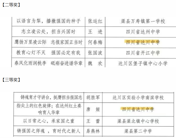 祝贺!四川省达川中学近三十名师生在各级各类活动中获奖