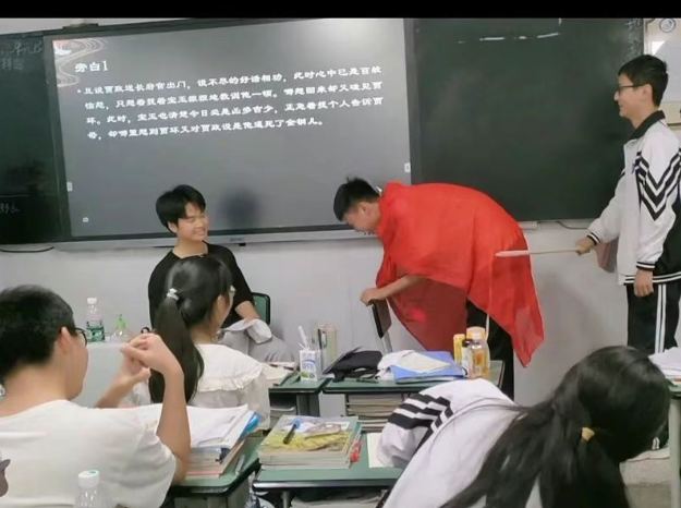 当许多人为“高中生不爱读书”而焦虑时,马老师却带着她的学生,把名著“玩”出了新花样。她曾把《红楼梦》的大观园搬进教室,让学生披上自制的马褂体验一把“怡红公子和封建礼教叛逆者”贾宝玉;他让学生分饰角色,演绎了一出《茶馆》的人间百态。当宝玉、黛玉站在并不华丽的讲台上,当繁漪和周朴园的目光在空气中对撞,那一刻,文字活了过来。孩子们在茶馆里的各种角色里理解了人性的复杂,在台词里品出了命运的悲凉。原来,让孩子爱上阅读最好的办法,是让他们走进故事里。