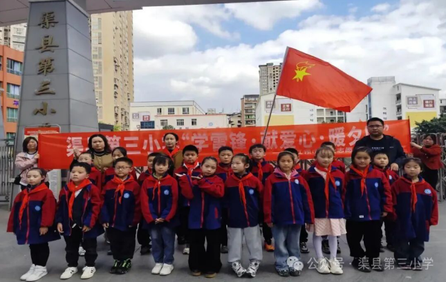随后,渠县第三小学副校长杨小平为活动致辞,他寄语少先队员们,要牢记雷锋精神的核心内涵,在实践中学会关爱他人、传递温暖,勉励全体队员将尊老爱老的传统美德内化于心、外化于行,用实际行动诠释新时代少年的责任与担当。台下的少先队员们认真聆听,眼神中满是坚定。
