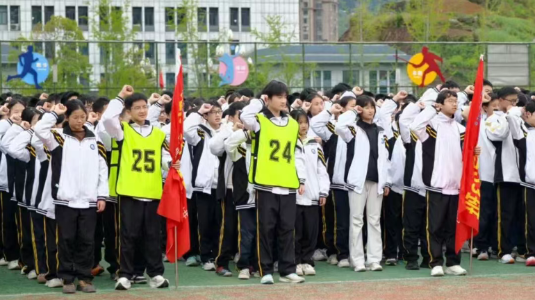 仪式中,全体同学高举右拳,以青春之名庄严宣誓:“铭记历史,不负英魂;珍惜当下,不负韶华;以信仰之光照亮前路,以奋斗之我致敬青春!请党放心,强国有我!”铿锵誓言在校园上空久久回荡,展现了达川中学学子昂扬向上的精神风貌。