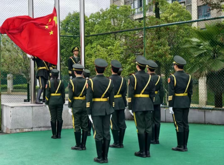 伴随着雄壮的国歌声,鲜艳的五星红旗冉冉升起,全体师生肃立行礼,表达对祖国的崇高敬意。随后,全场默哀一分钟,向为民族独立、人民解放和国家富强英勇献身的英烈们致以最深切的哀思。