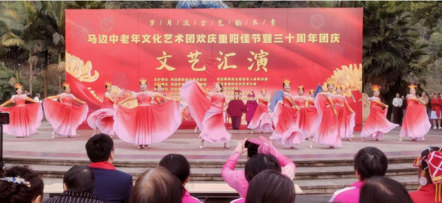 10月30日,以“岁月流金·艺韵长青”为主题的马边中老年文化艺术团欢度重阳佳节暨三十周年团庆文艺汇演活动在马边熊猫广场隆重举行。