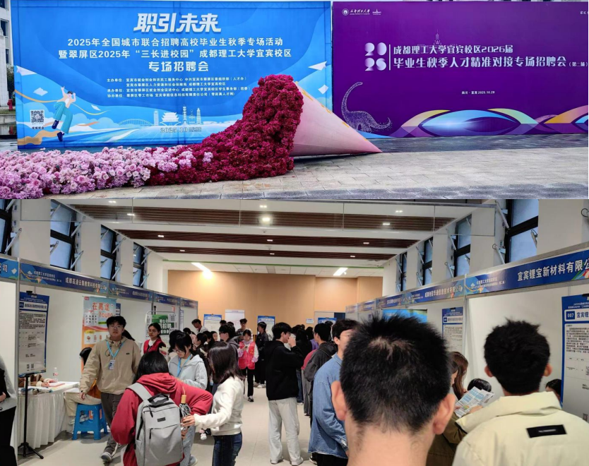 10月29日,“职引未来—2025年全国城市联合招聘高校毕业生秋季专场活动”暨翠屏区2025年“三长进校园”成都理工大学(宜宾校区)专场招聘会成功举办。本次活动通过政企校协同发力,为2026届高校毕业生与用人单位搭建了高效对接平台,取得显著成效。