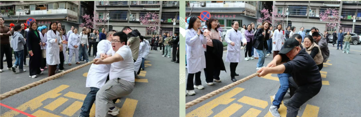 3月6日下午,达川区中医医院的院坝上欢声雷动,热闹非凡。在第116个“三八”国际妇女节到来之际,为丰富职工的精神文化生活,营造团结奋进、和谐温暖的医院文化氛围,工会精心策划并成功举办了一场别开生面的“巾帼趣味运动会”,让全院职工在工作之余,尽情享受运动的乐趣与节日的欢乐。 趣味竞技:赛出别样风采 本次趣味运动会设置了形式多样、妙趣横生的比赛项目,兼顾了趣味性、协作性和安全性。现场瞬间化身为欢乐的海洋: 拔河比赛 一根麻绳连接团结与力量,一声哨响点燃激情与斗志。各代表队队员紧握长绳、步调一致,在力量的博弈中展现出团队的默契与坚韧,最终门急诊医技系统勇夺第一。 盲人敲锣 蒙上双眼,转上三圈,方向感瞬间成为“奢侈品”。选手们小心翼翼,摸索前行,场外伙伴的提示声、欢笑声、助威声此起彼伏,现场充满了紧张又诙谐的气氛。 企鹅漫步 双腿夹球,双臂夹球,变身摇摇摆摆的“小企鹅”,考验的不仅是平衡感,更是“表情管理”。各种憨态可掬的姿态,让大家忍俊不禁,掌声与笑声不断。 颜色大挑战 选手们需快速说出字体颜色,而非文字本身,极度考验反应力与抗干扰能力。一时间,口误频出,引得围观同事捧腹大笑,在速度与准确的激烈交锋中,将现场气氛推向又一个高潮。 套大鹅 经典怀旧游戏“套圈”与可爱玩偶“大鹅”的组合,激发了所有人的童心与斗志。大家摩拳擦掌,各显神通,有的讲究力道角度,有的则靠“天选”运气。 活动中,职工们个个精神抖擞,全力以赴。每一项活动都充满了欢声笑语,每一个参与者的脸上都洋溢着节日的喜悦。大家通过参与各项活动赢取“欢乐兑换券”,并凭券兑换了工会精心准备的各种精美实用物品,收获满满,幸福满满。 衷心祝愿全院女职工及所有女性朋友节日快乐,工作顺利,身体健康,阖家幸福,芳华永驻!
