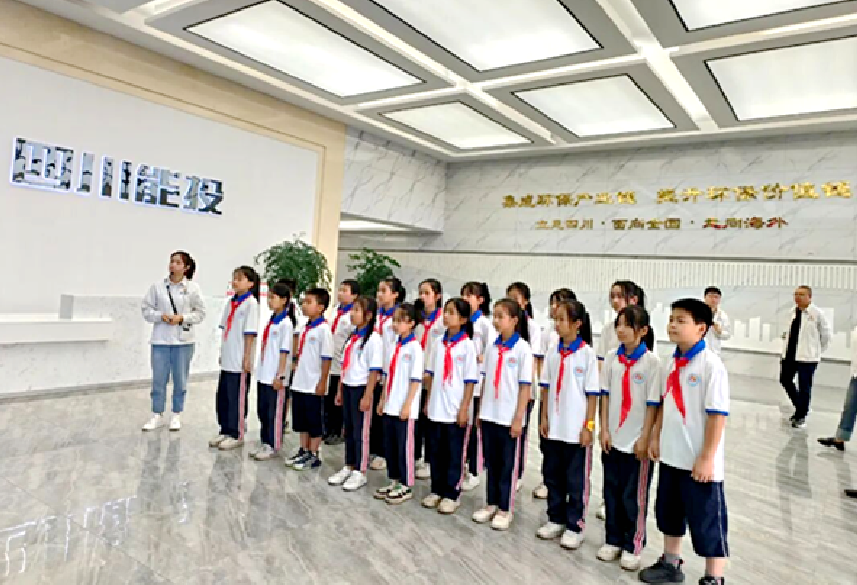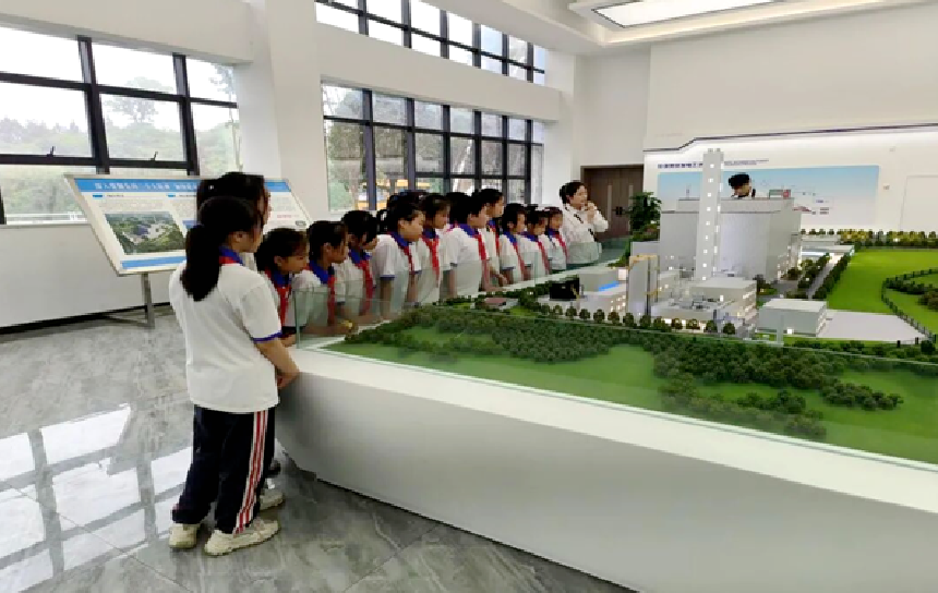 四川能投邻水环保发电有限公司位于邻水县袁市镇关路村一组,生活垃圾焚烧处理线设计总规模600吨/天,年发电量9952.78万Kw·h。活动过程中,讲解员通过沙盘全景详细介绍了企业发展文化、生活垃圾焚烧发电全流程,并带领小学生们实地参观了中央控制室、焚烧炉、烟气净化系统等设备设施,对垃圾焚烧产生的烟气、飞灰、废水的处理进行了详细讲解。学生们都是首次参观垃圾焚烧发电厂,既好奇又新鲜,体验了一场日常生活垃圾“变废为宝”的奇妙之旅。