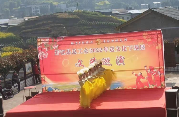 开江县总工会党组书记谭奇才介绍到:“庙子岭村是县总工会定点帮扶村,此次送文艺下乡惠民演出活动,既为群众带来了文化享受,让老百姓感受到了党的关怀,在潜移默化中提高了群众的文化素养,为引领文明新风尚起到了无形作用,助推了乡村振兴战略实施步伐”。