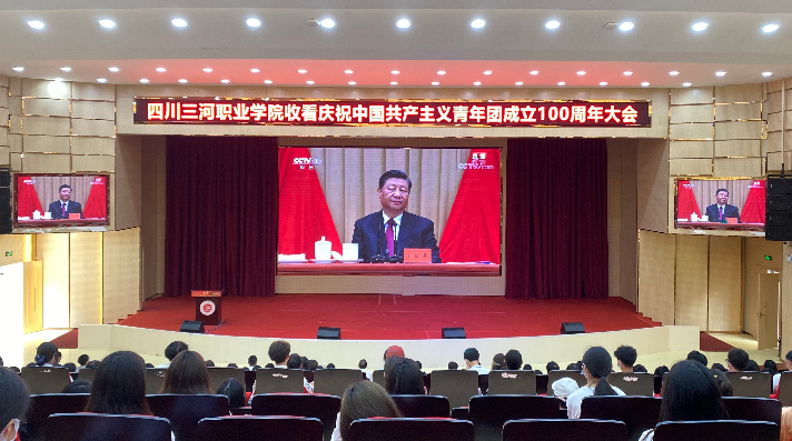 5月10日上午,庆祝中国共产主义青年团成立100周年大会在人民大会堂隆重召开。四川三河职业学院师生通过集中和分散的方式看直播、听讲话,组织集体学习活动。学校党委书记叶昌伦教授,学工部部长、校团委书记郭文宇在学术报告厅和同学们一起聆听习近平总书记重要讲话。