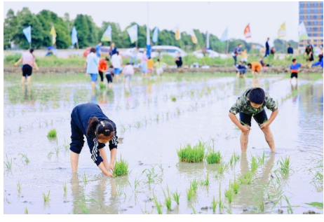 5月15日,成都市温江区刘家濠社区关工委、团支部在成都市红领巾双碳学院田野拾趣课堂—大田景观开展了“春秧入大田 劳动展风采”农耕劳动实践主题活动。