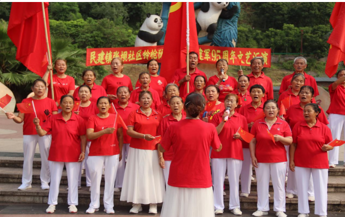 为庆祝中国人民解放军建军95周年,2022年8月1日,马边彝族自治县民建镇张坝社区在熊猫广场举办庆祝中国人民解放军建军95周年拥军文艺汇演。向伟大的人民军队献上诚挚的祝福。讴歌党领导人民军队从胜利走向胜利的光辉历程,激励社区居民以昂扬的精神状态奋进新征程、建功新时代,以实际行动迎接党的二十大胜利召开。
