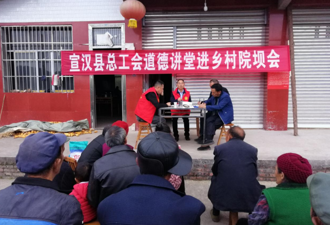 11月3日下午,在宣汉县红峰镇垭口村一处农家小院,宣汉县总工会在这里组织驻村帮扶队开展道德讲堂进院坝活动,该村50余名村民参加,共同感受道德力量,接受心灵洗礼。