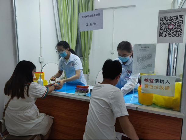 5月20日上午,达川区妇幼保健院主任庞候旭、副主任吴灏带领婚孕检科、检验科、健康教育科、宣传科等相关科室共16名医务人员,到达川区民政局婚姻登记服务大厅开展免费婚前医学健康检查和婚前健康知识宣教活动。在婚姻登记大厅外不少新人正在排队办理免费婚前医学健康检查,咨询员们认真开展婚前卫生指导和卫生咨询,逐一解答新人们的问题疑惑,并发放免费婚前医学检查手册,大力宣传免费婚前健康检查重要意义和好处,鼓励他们积极参加婚前医学健康检查;婚检科的工作人员为每一对新人进行认真细致的病史询问,再进行免费婚前医学健康检查。为了使国家免费婚前健康检查政策深入人心,达川区妇幼保健院为达川区的新人们赠送了“健康专属卡”,让他们在婚后(从孕育宝宝--住院分娩--产后康复--儿童保健)都享有更加优质的医疗服务。此次活动,参加婚前健康检查的新人共有110余人,发放健康宣传资料200余份,叶酸318瓶。