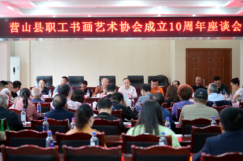 一撇一捺创艺术,挥毫泼墨庆盛典。为了庆祝营山县职工书画艺术协会从成立十年,5月26日,营山县职工书画艺术协会在营山县工人文化宫举行成立10周年座谈会。我县有关部门领导以及书法爱好者欢聚一堂,回顾协会十年发展历程,展望谋划协会未来发展前景。本次座谈会由营山县职工书法艺术协会常务副主席任应民主持。