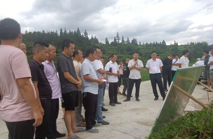 在孟彦镇宰官村坝区,该村党支部书记石庆茂重点介绍了水稻全程机械化示范点的经验做法以及如何发动群众、破解推动农业机械现代化过程中的问题和困难。