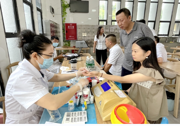 一大早,参加献血的干部职工们陆续来到献血点,在广安市中心血站工作人员的引导下有序完成身份信息核验、血压测量、献血量确认等工作,经检验合格后,献血人员穿上防尘鞋套,登上献血车进行血液采集。献血过程中,医护人员为献血者详细讲解献血常识,并叮嘱他们多喝水,注意休息,避免剧烈运动。