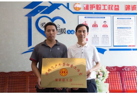 8月4日,渠县总工会在人才公寓工会户外劳动者服务站为“陈鹏飞户外劳动者工作室”授牌,这也是渠县总工会成立的首个户外劳动者工作室。渠县总工会党组书记、副主席熊方华出席活动并讲话、授牌,活动由党组成员、工人俱乐部主任魏映杰主持。