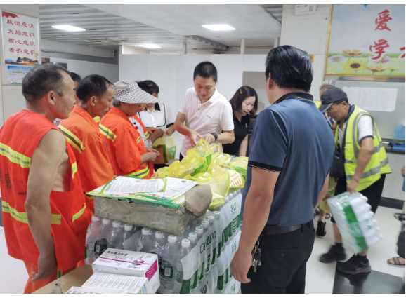 渠县进入夏季高温季节,为做好高温作业和高温天气作业劳动保护工作,切实维护户外工作职工的劳动安全健康权益,8月16日,渠县渠南街道党工委、街道办联合街道总工会开展高温送清凉活动,把党和政府的关怀、工会组织的牵挂及时送到高温一线职工的心坎上。