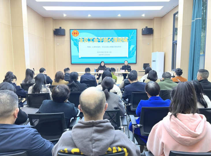 为认真贯彻落实中国工会十八大精神,进一步提高工会干部的心理健康意识,促进职工的身心健康,11月24日,达州市达川区总工会在劳动者大本营举办全区工会干部心理减压团辅活动。全区部分乡镇(街道)总工会主席,区级部门(单位)、产(行)业工会主席,共40人参加。