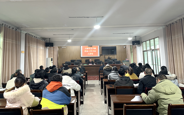 为打造“五劲”战队、争做“三味”干部,着力提升全镇党员干部“业务能力长度、视野格局宽度、政治素养高度”,为全镇拼战乡村振兴、项目建设、托底性帮扶、服务群众、基层治理等重点工作,汇聚“加快追赶、跨越发展”的磅礴动能。12月13日下午,万源市太平镇第一期“长宽高”微课堂正式开班。主要以“如何做好群众工作”为主题,邀请市委政法委四级调研员李寿东老师作专题授课。随后,集体再次学习了《拼战倡议书》。镇党委书记邓小宝同志围绕“为什么拼战、该如何拼战”进行专题辅导。镇领导班子成员、全体干部职工以及各村(社区)党组织书记共计70余人参加本次专题学习。