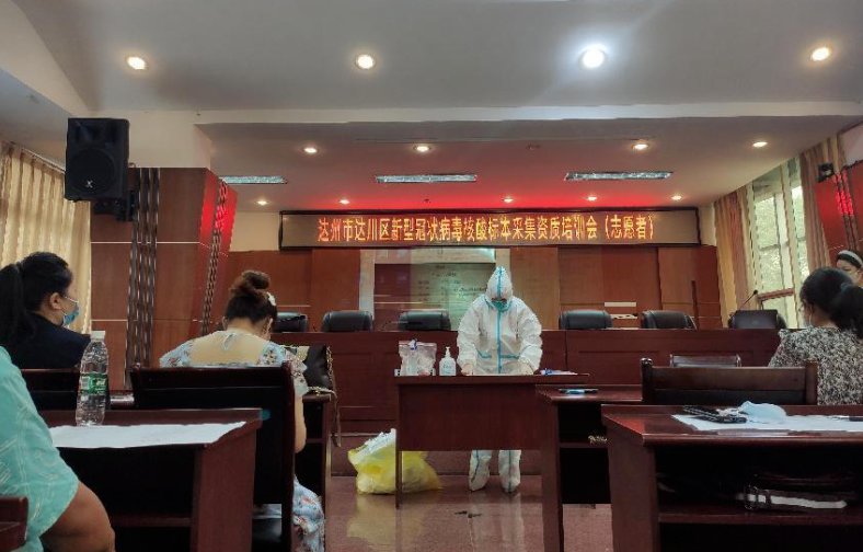 今年5月以来,达州市达川区卫生健康局针对前期两轮全员核酸检测反映出来的样本转运人员、社区信息录入人员业务不熟练、个人防护不到位等问题,按照“宁可备而无用,不可用而无备”的疫情防控工作要求,组织相关专业专家,多轮次开展业务知识培训,补齐工作短板,切实提升我区大规模核酸检测采样、转运及信息录入能力。