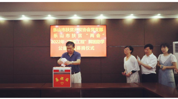 7月4日乐山市扶贫开发协会党支部,四川省扶贫基金会乐山市分会、乐山市扶贫开发协会(简称市扶贫“两会”)共同开展了“感党恩 尽己任 助学生 --2022年‘栋梁工程’解困助学公益募捐活动”,帮助困难家庭学生完成学业。市扶贫“两会”职工自愿按每人每月5元和每10个职工帮扶1名困难家庭大学生的捐款标准(3000元/年),全体党员干部、职工积极踊跃参与捐款,共计捐款4680元。