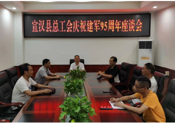 8月1日,我们迎来了中国人民解放军建军95周年,宣汉县总工会召开“八一”建军节暨庆祝中国人民解放军建军95周年座谈会,受县总工会党组书记、副主席陈小平的委托,县总工会党组成员、副主席杜小平向总工会机关全体退役军人致以节日的祝贺和诚挚的慰问,感谢他们为工运事业发展做出的贡献。
