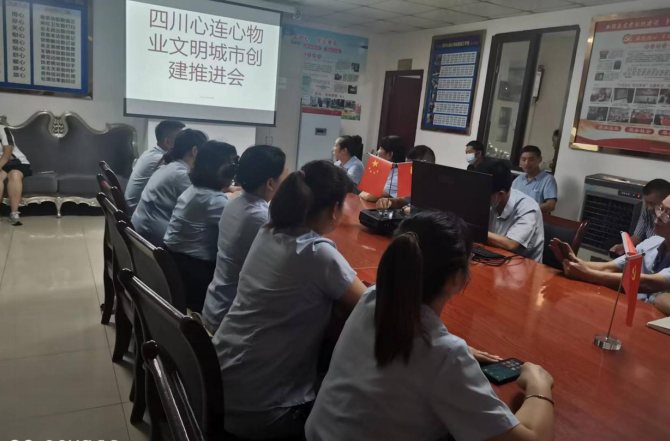 (图为:四川心连心物业服务公司传达创文工作会议)