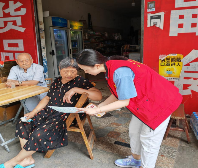 (图为:志愿者在南坝社区向社区居民宣传创文知识)