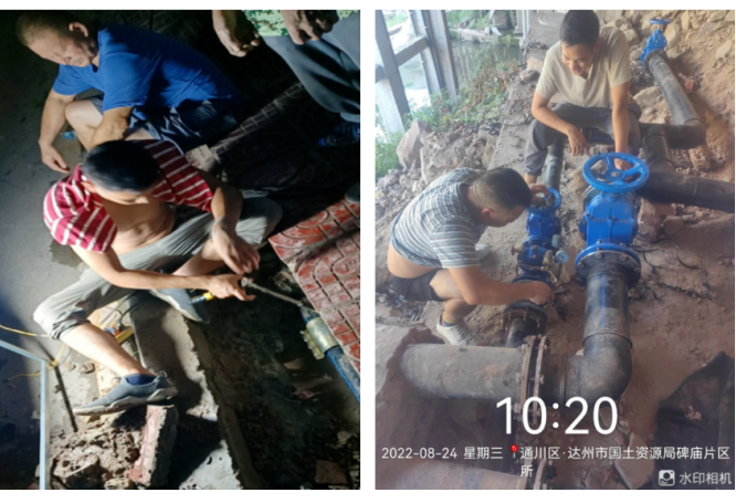 高温天气生活用水急剧攀升,为保障居民正常用水,维修工人师傅们始终坚守岗位,奋战在抢修一线。碑庙镇水厂于今年上半年建成投入试运行,新水厂处于机器设备、水压调试阶段。面临严峻考验,水压过大导致场镇主水管网大面积爆管,水压过小导致高楼层居民无水用,碑庙片区职工在耐心的做好群众解释工作的同时夜以继日地巡查管网,对巡查的漏水点进行开挖维修。