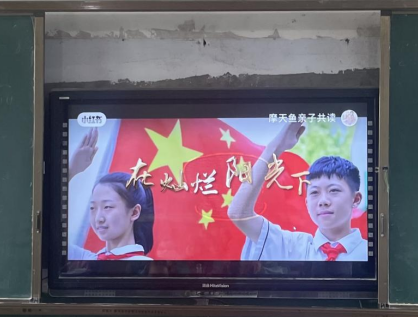 (同学们观看喜迎党的二十大纪录片视频)