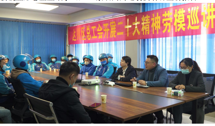 11月16日,党的二十大精神“达川工会劳模宣讲团”走进新就业形态企业饿了么,20余名网约送餐员聆听宣讲报告。