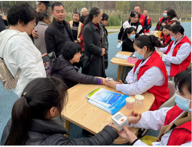 上午九时,义诊活动正式开始,区总工会全体女职工身穿整齐的志愿者服装,在梨树坪户外劳动者爱心驿站大门前就开始“摆摊营业”了,区总工会志愿者女神们有的当导引,引导过往群众前往义诊台免费量血压测血糖,诊治身体不适;有的为过往职工群众宣传加入工会的好处,帮助下载并安装《川工之家》;有的为新就业形态劳动者、为过往游客发放《中华人民共和国民法典简易读本》《妇女权益保障法》《劳动法律法规百问百答》《艾滋病防治知识手册》等法治读本手册;有的为过往女性朋友赠送爱心小礼品……