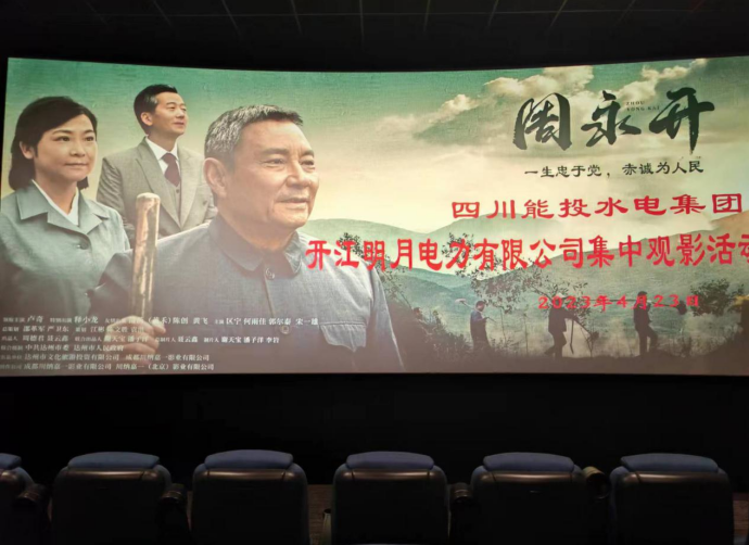 四川先锋网消息(周红)4月23日晚7点,四川水电集团开江明月电力公司组织机关党员、领导班子成员、各部门、站、所负责人共计50余人在太平洋电影院观看了教育影片《周永开》。