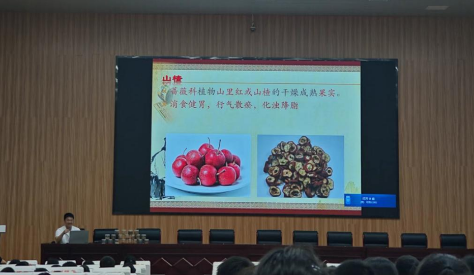 课堂上,区中医医院的医生用PPT演示的方式向同学们讲述了山楂、菊花、连翘等二十多种常见中药材的科普知识。紧接着在区中医医院护理团队的带领下,同学们现场一起学习了中医经典健身方法—八段锦,生动活泼、寓教于乐的授课方式,深受同学们的喜欢。