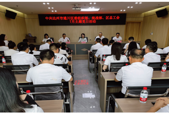 为深入学习宣传贯彻党的二十大精神,进一步加强部门联动,促进区委组织部、统战部,区总工会党员干部之间交流共融、紧密联系,促进党建工作互学互鉴、提质增效。7月4日下午,区委组织部、统战部,区总工会在通川区职工活动中心联合开展7月主题党日活动。区委常委、统战部部长,区总工会主席陈升涛,区委常委、组织部部长马辉出席本次活动,区总工会党组书记、副主席李良主持活动。区委组织部、统战部,区总工会机关党员及入党积极分子参加活动。
