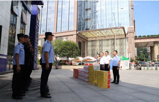 8月4日,达川区委常委、政法委书记徐超带队慰问特巡警、执勤民警和武警官兵,为他们送上矿泉水、凉茶、藿香正气液等防暑降温物品。区委政法委常务副书记唐军等陪同慰问。