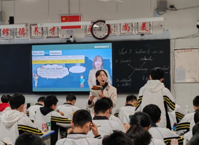 考评组首先听了一节智慧教育平台应用现场课。冯志清老师运用国家中小学智慧教育平台中的网络课程讲授了《Stonehenge》一课。课前,她先给学生布置了学习任务清单,让学生提前预习并上网查找关于Stonehenge的相关文献资料。在应用现场课堂教学中,她设置了一些核心问题,并让学生观看相关视频,然后组织学生展开分组讨论,再反馈讨论结果。最后,教师进行难点启发释疑,从而达到最佳的教学效果。课堂教学中,师生关系融洽,互动多,生成多。这个平台的资源特别丰富,通过搜索、利用平台上的教学资源,它不仅缩减了教师的备课时间,而且增强了学生的学习兴趣,大大提高了课堂教学效率。冯老师说,“以后我会继续利用这个平台的优质教学资源来优化我的课堂教学活动”。考评组各位成员对应用现场课的效果表示赞许。