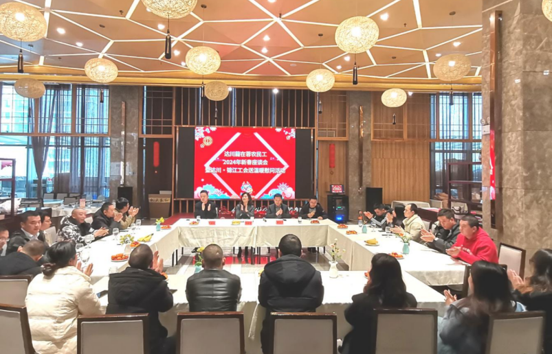 1月11日,达州市达川区总工会赴成都慰问探望在外务工农民工,为他们送上新年的祝福和家乡的问候,送去区委、政府和区总工会的关怀。