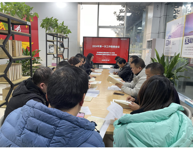 岁末年初,在达州高新区总工会的安排部署下,各基层工会陆续就本企业相关工作进行了安排部署。其中,2024年1月12日,达州高新区道路运输行业工会联合会与达州高新区道路货运联合工会在物流港“暖心之家”召开了2024 年第一次工作联席会议。会议由达州高新区道路运输行业工会联合会主席罗必胜主持,运输行业等12家基层工会负责人参加了会议。