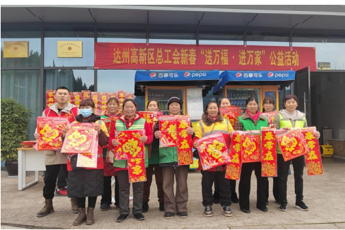此次活动,高新区总工会为千余名职工群众送上新春对联和“福”字,把工会“娘家人”的关怀和温暖送到千家万户,为丰富职工群众精神文化生活,舒心过节,吉祥度春,营造了欢乐祥和的节日氛围。(达州高新区总工会)