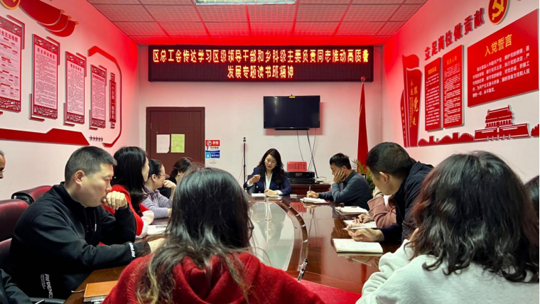 3月22日下午,达川区总工会召开专题学习会议,传达学习“达川区区级领导干部和乡科级主要负责同志推动高质量发展专题读书班”精神。区总工会党组书记、副主席吴婷婷主持会议并讲话,全体干部职工参加。