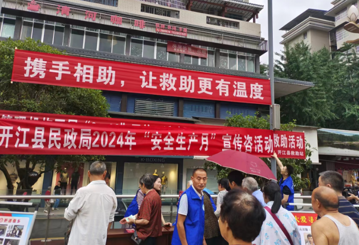今年6月是全国第二十三个“安全生产月”。为进一步增强民政服务对象的安全风险防范意识,6月19日,按照县安办的统一安排部署,开江县民政局在县清河广场开展“人人讲安全、个个会应急——畅通生命通道”为主题的“安全生产月”集中宣传活动。