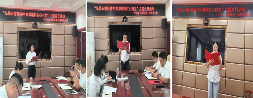 活动中,组织全体干部职工对《中国共产党第二十届中央委员会第三次全体会议公报》《中共中央关于进一步全面深化改革 推进中国式现代化的决定》及中央社会工作部部长吴汉圣谈贯彻落实党的二十届三中全会精神进行了学习传达和深入解读。全体干部职工结合自身工作交流了学习心得。支部党员们以诗歌朗诵形式激情地弘扬伟大的民族精神,将《金川的和谐乐章》《石榴籽之光,红心永向党》等经典诗歌演绎得淋漓尽致,字里行间流露出对民族团结的深情厚谊和对伟大祖国的无限热爱。