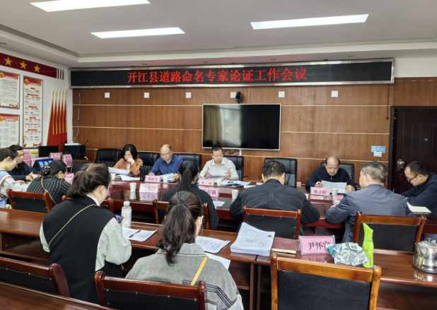 2024年10月16日上午,开江县新增道路命名工作专家会议在县民政局三楼会议室召开,开江县区划地名专家库部分成员、乡镇人大代表、街道办及涉及乡镇负责同志出席,会议由县地名办主任何成主持。
