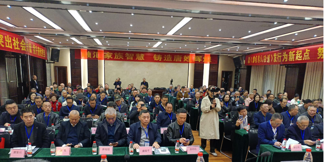 天高气爽,初冬正好,桔红橙黄,硕果飘香。唐氏家族,喜气洋洋。为了“弘扬中华文化,传承宗族文明,宣扬宗族名人,凝聚宗族力量”,2024年11月17日,渠县唐氏文化研究会在碧瑶湾大酒店举行《渠县唐氏通谱》发行庆典大会。四川唐氏文化研究会唐恭春、唐敦教、唐中全、唐清友等省领导,四川唐氏文化研究会达州分会唐华彪、唐天均、唐明松、唐本仁等市领导莅临会场指导。特邀渠县政协原副主席唐定智出席会议。来自成都、广安、武胜、华蓥、岳池、营山、蓬安、仪陇、射洪、安居区等市县分会的宗亲以及渠县各唐氏支系宗亲代表共计150余人参加会议。
